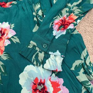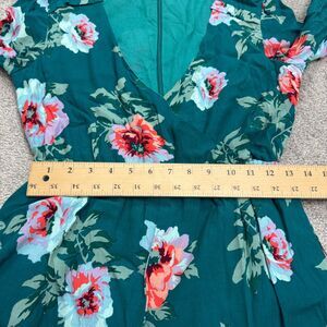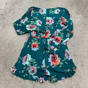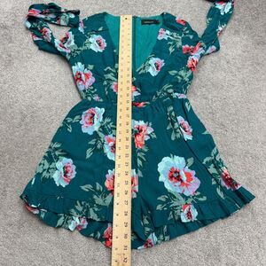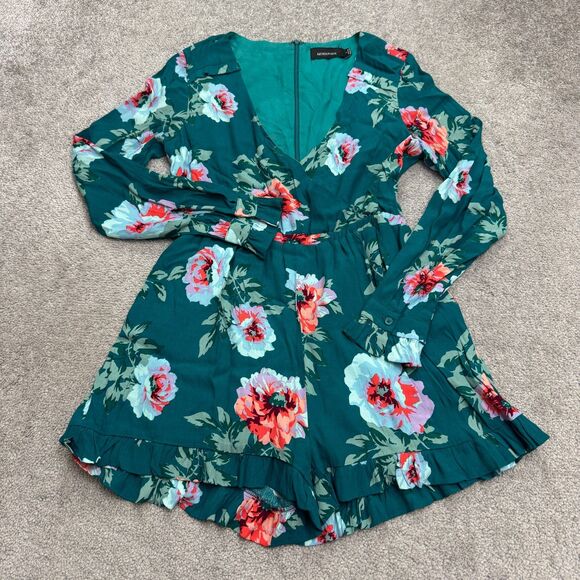 Minkpink Ruffle Floral Romper Womens small Green Long Sleeve V-Neck Summer Boho