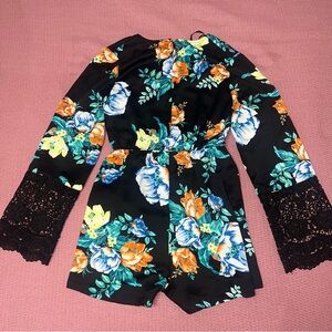 Minkpink Simply Bloom Lace Sleeve Romper Black size S