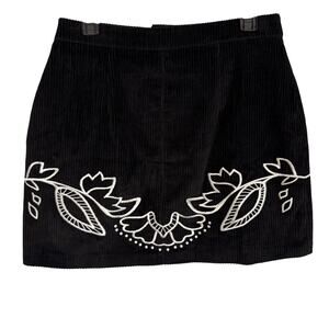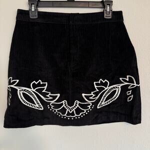 Minkpink Skirt Corduroy Mini Skirt Black & White Floral Embroidery Sz Medium