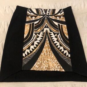 Minkpink Skirt Size Medium. Only worn once and in great condition, one flaw on the gold part as pictured, not too noticeable. Very cute mixed pattern and asymmetrical cut on the front.