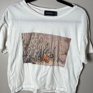 White graphic t-shirt featuring a nature-inspired design. This shirt is preloved in good condition.