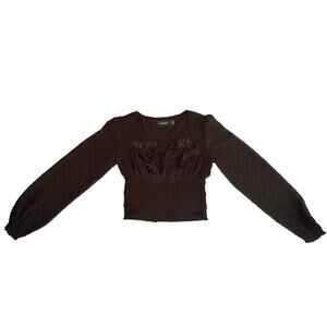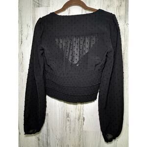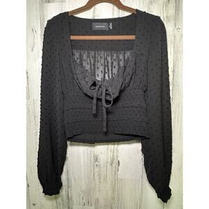 Minkpink Womens Sheer Black Smocked Crop Top XS Extra Small Swiss Dot Tie Front