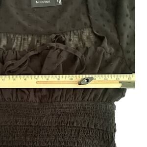 Item: Minkpink Womens Sheer Black Smocked Crop Top Swiss Dot Tie Front