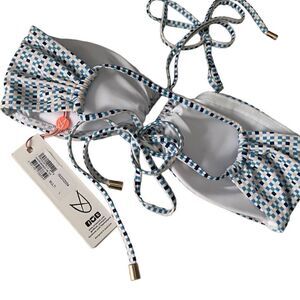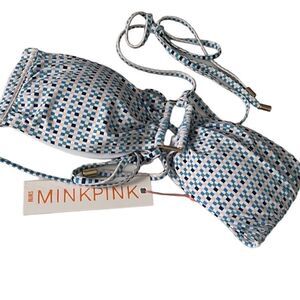 Minkpink Zephyr Blue Multi Bandeau Halter Bikini Size Large NWT