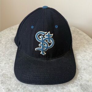 Zephyr cap with bold black design. Features blue accents. Ideal for everyday style.