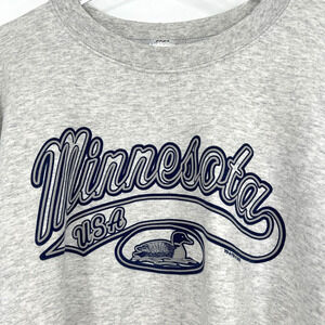 Minnesota Sweatshirt Womens XXL Gray Spell Out Crew Neck Duck Gildan Heavyweight