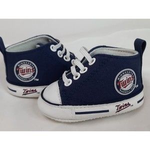 Show off your little one's love for the Minnesota Twins with these adorable pre-walker high top tennis shoes. Perfect for babies ages 0 to 6 months, these shoes are made by Baby Fanatic and feature the iconic Twins logo. The blue color with baseball theme will make your baby look like a true athlete. Keep your baby's feet looking stylish while showing off their team spirit!