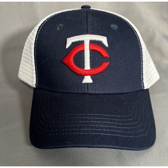 Minnesota Twins Trucker Hat Snap Back Melonwear White & Navy Blue Baseball Cap