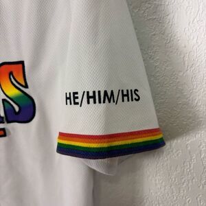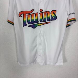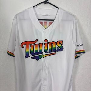 Excellent condition Minnesota Twins White with Rainbow Pride Logo Baseball Jersey He/Him/His Adult Medium