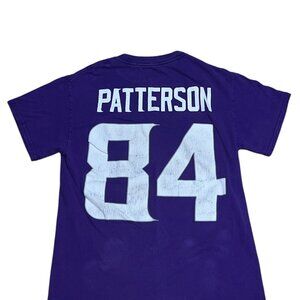 This is a Minnesota Vikings Cordarrelle Patterson #84 FLASH T-shirt in size Small made by Majestic. The shirt is purple in color and officially licensed by the National Football League (NFL). It is designed for men and features the player's name and number. The shirt is suitable for regular season games and events like the Super Bowl. It has a capacity of 8 oz and was manufactured in Honduras.
