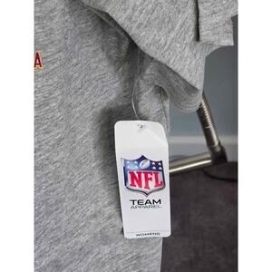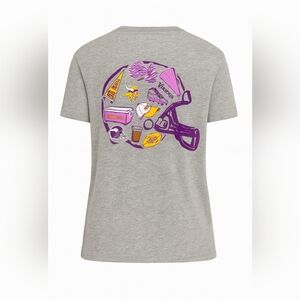 Cheer on the Minnesota Vikings in this brand new women’s XL pocket tee. Made from soft heather gray cotton, this NFL Team Apparel shirt features a front pocket with the Vikings logo + “Minnesota” text. The back showcases a large football helmet graphic filled with fun Vikings-themed game-day icons (foam finger, cleats, cooler, helmet, drink, pennant & more).