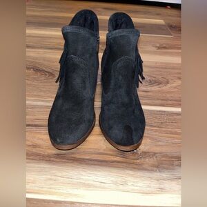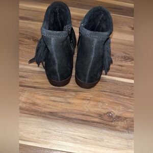 Minnetonka 1529 Black Fringe Suede Ankle Boot Low Heel Side Zip Women's 5.5