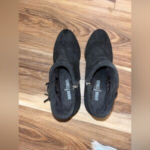 Minnetonka 1529 Black Fringe Suede Ankle Boot Low Heel Side Zip Women's Size 5.5