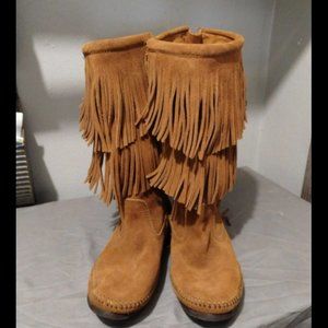 Like new Minnetonka 2 Layer Fringe Suede Boots. These are in amazing condition and are a women's size 9. These were beautifully made in the Dominican Republic.