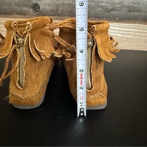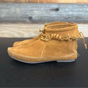 These ladies, Minnetonka fringe moccasin boots are a size 7.5 and are in great preowned condition. Please see photos as they are part of the description and show the wear and condition of the shoes. Questions? Leave a comment below!