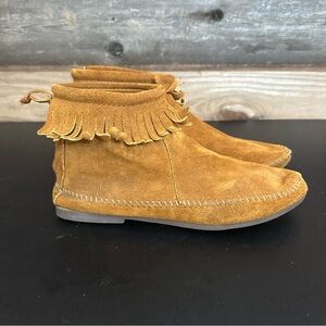 Minnetonka 282 Women's Brown Suede Fringe Ankle Boots Hard Sole 7.5 Zip Closure