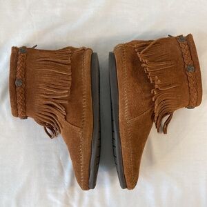 Minnetonka 292 Bootie Moccasins - Zip Heel Brown Suede Fringe Great Condition