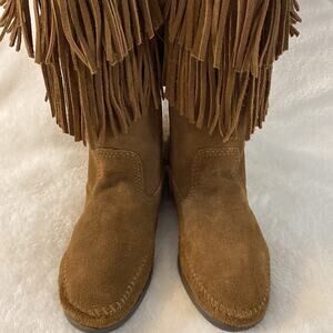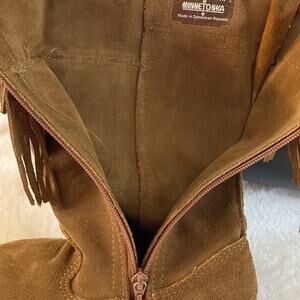 Minnetonka 2-Layer Fringe Boot Brown Suede Leather Size 7