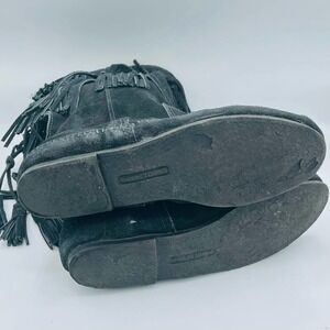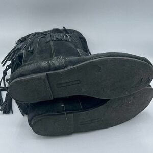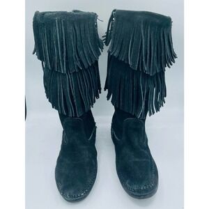 Minnetonka 2-Layer Fringe Boot Size 7 Women's Black Suede Moccasin Boho 1689