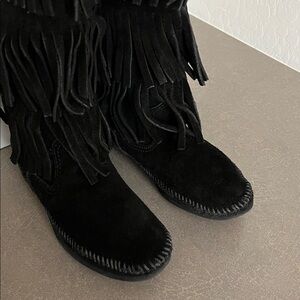 Minnetonka 3 tier black suede fringe boot wise 7. Any questions please ask
