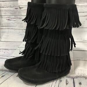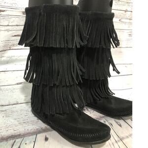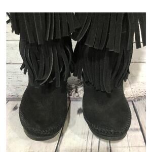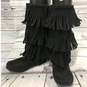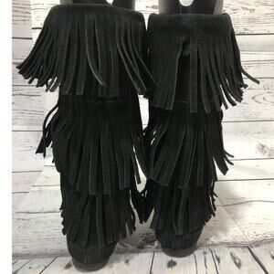 Minnetonka 3-Layer Black Fringe Boot 12" tall cowgirl western size 7
