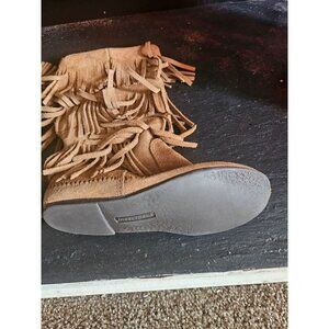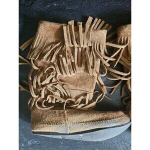 Minnetonka 3-Layer Fringe Boot Brown Suede Leather Boots Sz 9