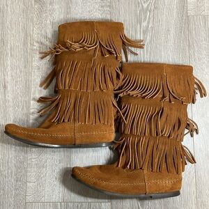 Minnetonka 3-Layer Fringe Boot Style 1632 Brown Suede Leather 8