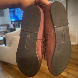 Minnetonka 3-Layer Fringe Boot in Wine Size 8