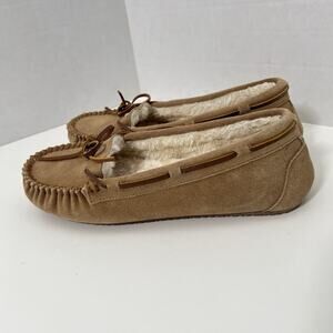Minnetonka 4052 Cally Tan Suede Faux Fur Lined Slip-On Slipper Tan Women's 10
