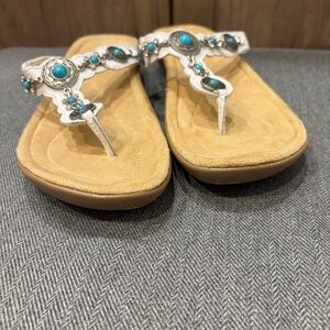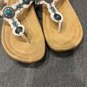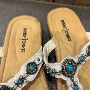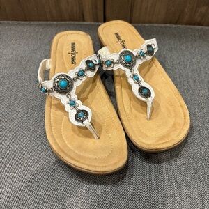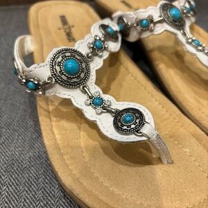 Minnetonka 8 White leather Turquoise Concho Southwestern Thong Sandals