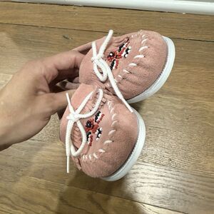 Minnetonka Aztec Moccasins Childrens Thunderbird Light Pink Suede Girls Size 3