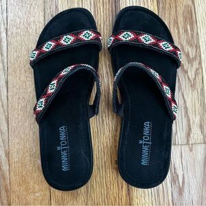 Minnetonka Beaded Leather Sandals Women’s Sz 7 Black/ Red/ White