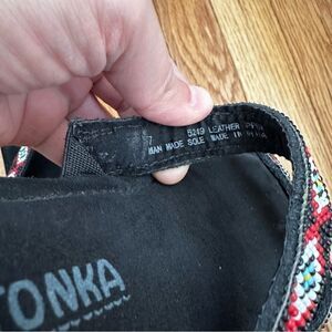 Minnetonka Beaded Leather Sandals Women’s Sz 7 Black/ Red/ White. Please see photos for indications of use.