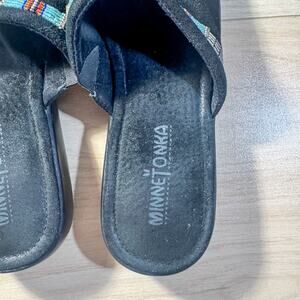 Minnetonka Beaded Suede Slide Sandals | Black Moccasin Boho Sandals | Sz 9 #5240