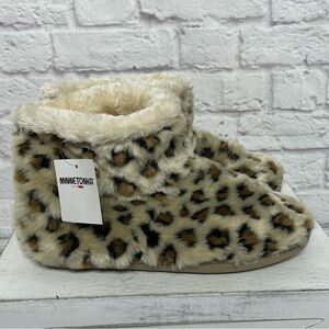 Minnetonka Betty Cream Furry Bootie Slippers NWT