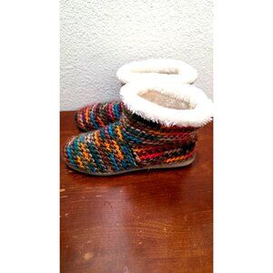 Minnetonka Betty Slipper Colorful Knit Boot Slippers Faux Fur Lining Size XL