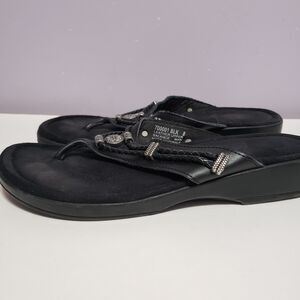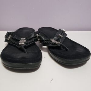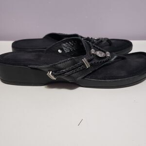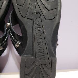 Minnetonka Black Leather Women's Slip On Sandals Sz 8