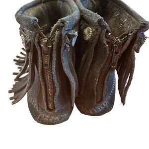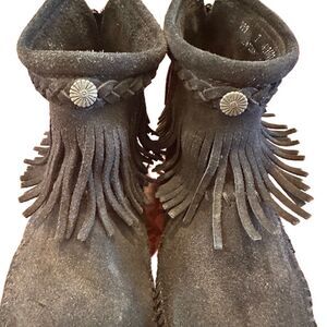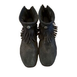 Minnetonka Black Suede Zip Hardsole Boot- Size 8