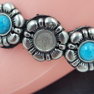 Minnetonka Black Thong Flip Flop Sandal w/ Silver Turquoise Flower Strap Size 11