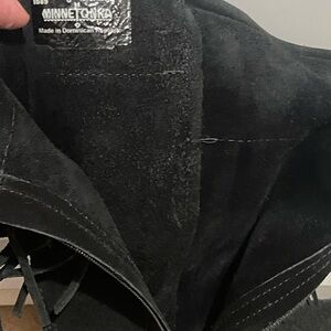 Minnetonka Boots Womens 6 3 Tier Moccasin Tall Boots black suede leather
