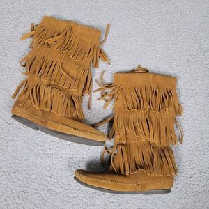 Minnetonka Boots Womens 6 Brown 3 Layer Fringe Western Boho Festival Moccassin