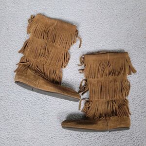Minnetonka Boots Womens 8 Brown 3 Layer Fringe Western Boho Festival Moccassin