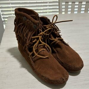 Minnetonka Brown Fringe Moccasins size 9