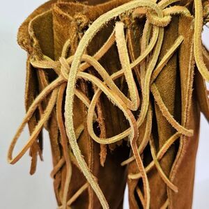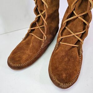 Minnetonka Brown Lace Front Knee High Suede Fringe Moccasins Festival Boots Sz 7