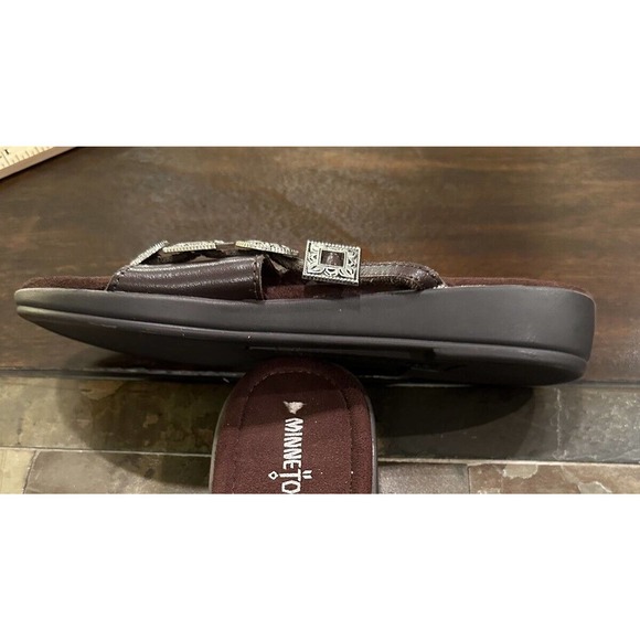 Minnetonka Brown Leather Toe Ring Embellished Sandals 7