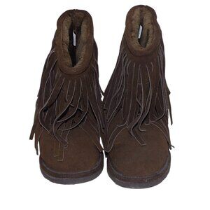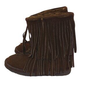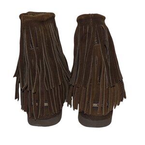 Minnetonka Brown Suede Fringe Boots 6 Boho Western Nomadic Festival Cozy