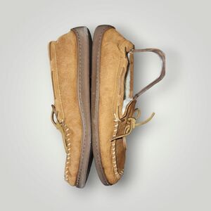Minnetonka Brown Suede Moccasin Slippers Pile Lined Hard Soled 3902 11