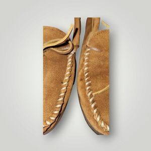 Minnetonka Brown Suede Moccasin Slippers Pile Lined Hard Soled 3902 Size 11M