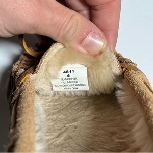 Minnetonka Cally Mocassin Slippers Suede Pile Tan Women’s 5.5 Girls Size 4