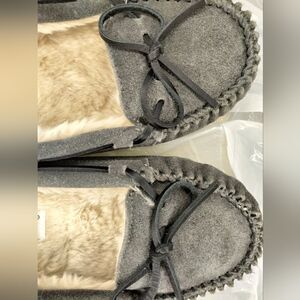 Minnetonka Cally Slipper Gray Suede Sz 6 Leather Upper Faux Fur Liner